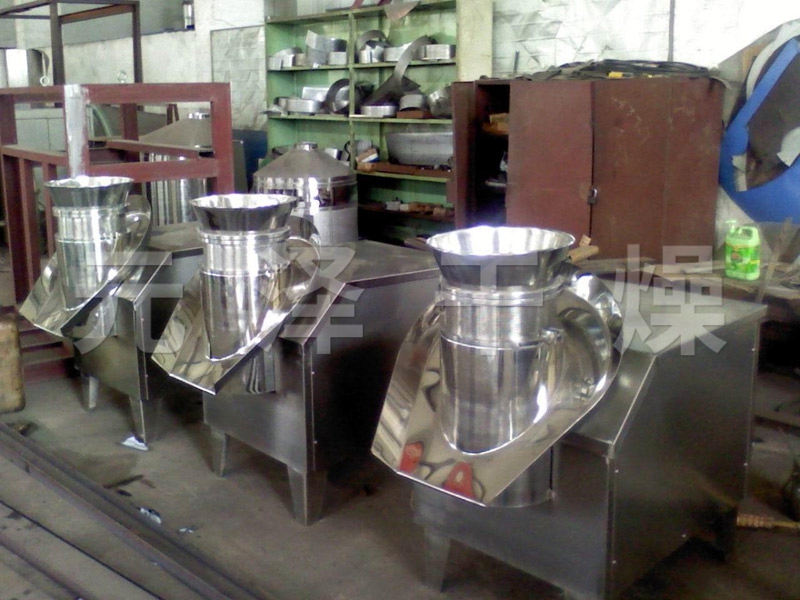 本機(jī)用于制藥、食品、沖劑、化工、固體飲料等行業(yè),將攪拌好的物料制成所需顆粒,特別適用對(duì)粘性較高的物料。