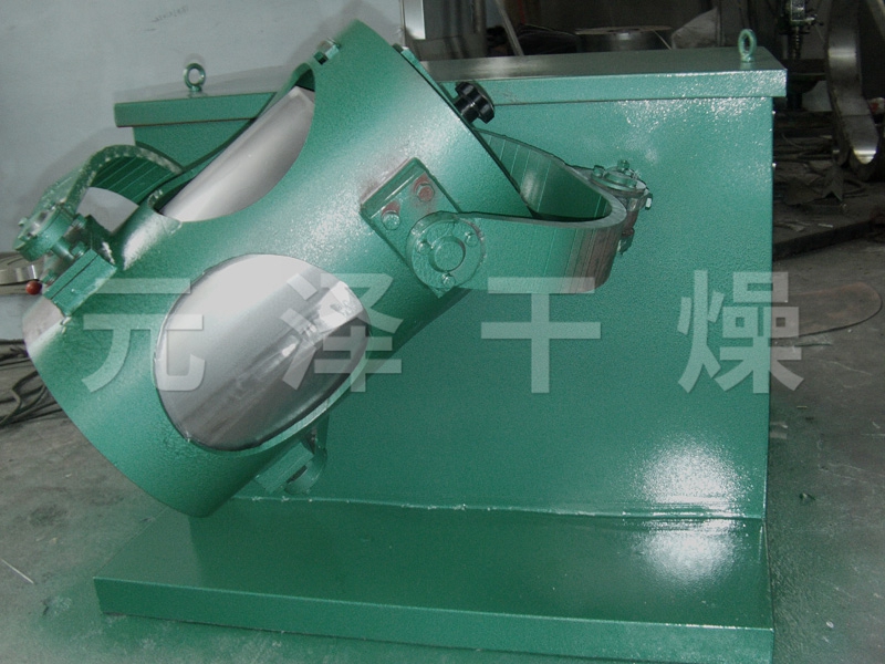 結構:該機由機座、傳動系統(tǒng)、電器控制系統(tǒng)、多向運動機構、混合筒等部件組成。與物料直接接觸的混合筒采用優(yōu)質不銹鋼材料制造,桶體內(nèi)外壁均經(jīng)鏡面拋光。