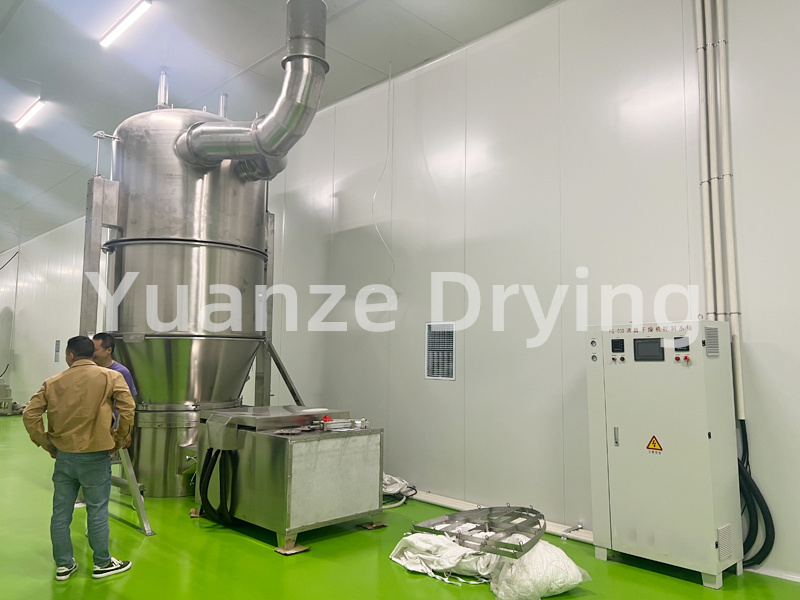 The material powder particles are in an annular fluidized state in the raw material container (fluidized bed). They are preheated and mixed by purified heated air, and the adhesive solution is atomized and sprayed in, causing several particles to aggregate into agglomerates containing the adhesive. Due to the continuous drying of the material by hot air, the moisture in the agglomerates evaporates, and the adhesive solidifies. This process is repeated continuously, forming ideal and uniform microporous spherical particles.