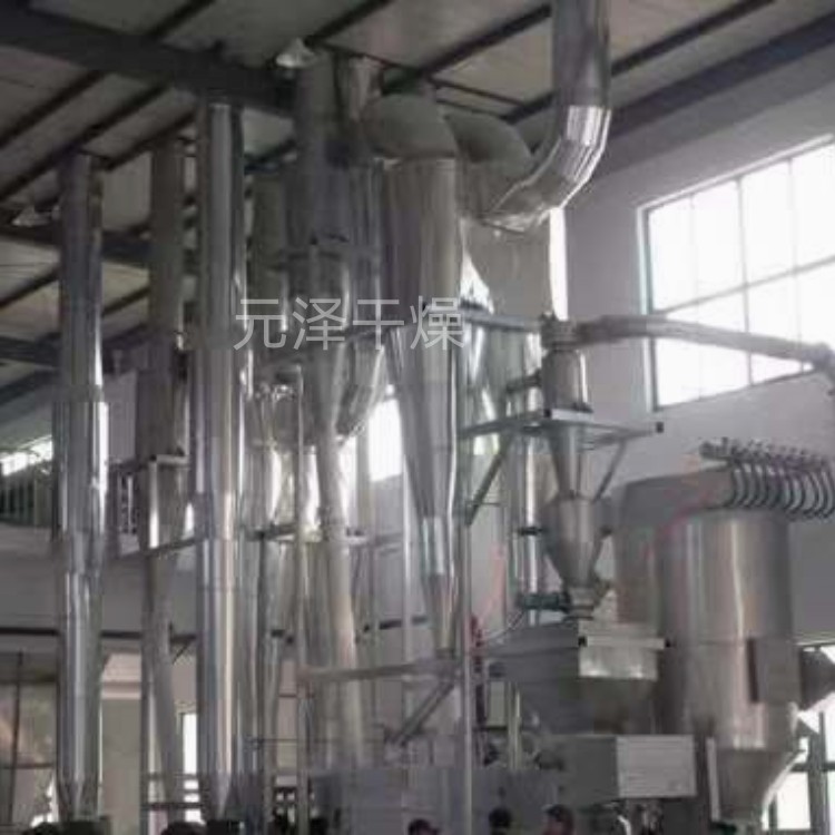 氣流干燥機(jī)是利用高速流動(dòng)的熱氣流使?jié)竦矸蹜腋≡谄渲?。具有傳熱系?shù)高,傳熱面積大,干燥時(shí)間短等特點(diǎn)。氣流干燥也稱"瞬間干燥"是固體流態(tài)化中稀相輸送在干燥方面的應(yīng)用。該法是使加熱介質(zhì)和待干燥固體顆粒直接接觸,并使待干燥固體顆粒懸浮于流體中,因而兩相接觸面積大,強(qiáng)化了傳熱傳質(zhì)過程,廣泛用于散狀物料的干燥單元操作。