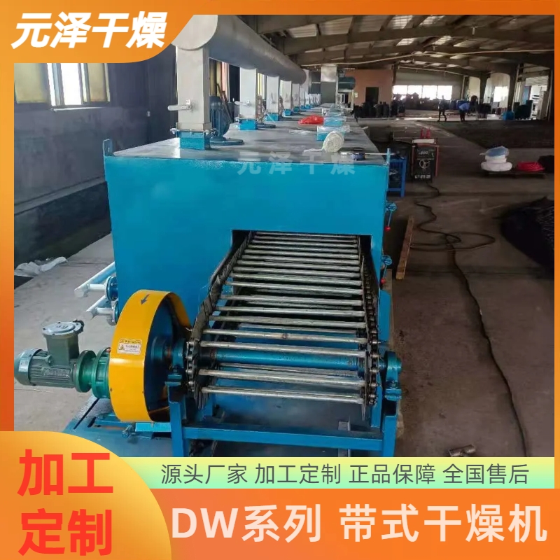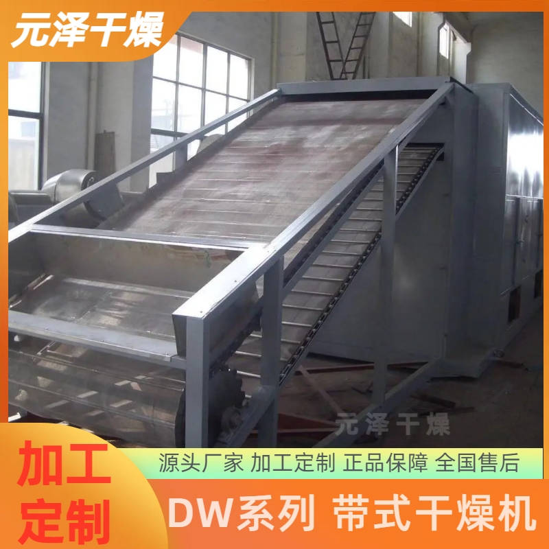 DW系列多層帶式干燥機(jī)是成批生產(chǎn)用的連續(xù)式干燥設(shè)備,用于透氣性較好的片狀、條狀、顆粒狀物料的干燥,對(duì)于脫水蔬菜、催化劑、中藥飲片等類含水率高、而溫度不允許高的物料尤為合適;該系列干燥機(jī)具有干燥速度快、蒸發(fā)強(qiáng)度高、產(chǎn)品質(zhì)量好的優(yōu)點(diǎn),對(duì)脫水濾餅狀的膏狀物料,需經(jīng)造?;蛑瞥蓷l狀后方可干燥。