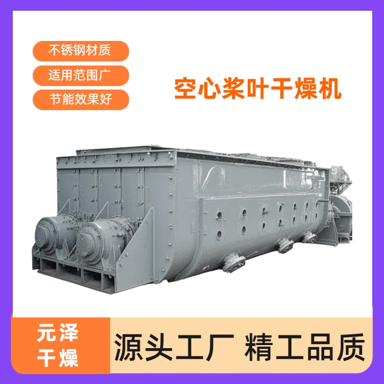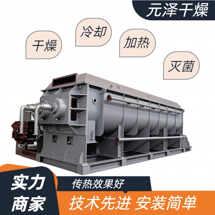 空心軸上密集排列著楔型中空漿葉,熱介質(zhì)經(jīng)空心軸流經(jīng)漿葉。單位有效容積內(nèi)傳熱面積很大,熱介質(zhì)溫度從-40℃到320℃,可以是水蒸汽,也可以是液體型:如熱水、導(dǎo)熱油等。間接傳導(dǎo)加熱,沒有攜帶空氣帶走熱量,熱量均用來加熱物料。熱量損失僅為通過器體保溫層向環(huán)境的散熱。楔型漿葉傳熱面具有自清潔功能。物料顆粒與楔型面的相對運(yùn)動產(chǎn)生洗刷作用,能夠洗刷掉楔型面上附著物料,使運(yùn)轉(zhuǎn)中一直保持著清潔的傳熱面。漿葉干燥機(jī)的殼體為Ω型,殼體內(nèi)一般安排二到四根空心攪拌軸。殼體有密封端蓋與上蓋,防止物料粉塵外泄而充分發(fā)揮作用。
