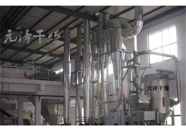 這類物料具有特殊性:比重輕,加料難,易燃,易爆。針對(duì)此情況,我公司技術(shù)部門開發(fā)研制的新型氣流干燥機(jī),在原氣流干燥機(jī)的基礎(chǔ)上改進(jìn)了加料形式,解決了“架橋”現(xiàn)象。創(chuàng)新改進(jìn)了旋風(fēng)分離器,解決了物料翻滾不出料的現(xiàn)象。系統(tǒng)集成,控制先進(jìn),超溫報(bào)警連鎖關(guān)閉熱源,有效解決了溫度過(guò)高引起的燃燒爆