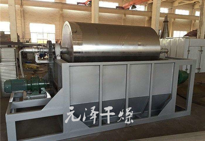 3、干燥時間短。物料的干燥周期一般只有10-300秒,在適合于熱敏性物料。若將滾筒干燥機設(shè)置在真空器中,則可在減壓條件下運行。