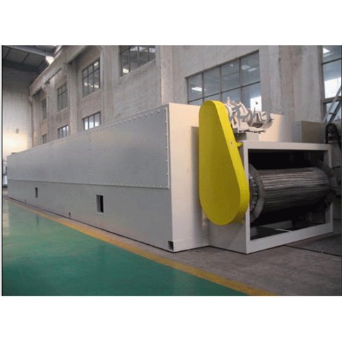 物料由加料器均勻地鋪在網(wǎng)帶上,網(wǎng)帶一般采用12-60目不銹鋼絲網(wǎng),由傳動(dòng)裝置拖動(dòng)在干燥機(jī)內(nèi)移動(dòng)。干燥機(jī)由若干單元組成,每一單元熱風(fēng)獨(dú)立循環(huán),部分尾氣由專門排濕風(fēng)機(jī)排出,廢氣由調(diào)節(jié)閥控制,熱氣由下往上或由上往下穿過鋪滿物料的網(wǎng)帶完成熱量與質(zhì)量傳遞的進(jìn)程,帶走物料水份。網(wǎng)帶緩慢移動(dòng),運(yùn)行速度可根據(jù)物料溫度自由調(diào)節(jié),干燥后的成品連續(xù)落入收料器中。上下循環(huán)單元根據(jù)用戶需要可靈活配備,單元數(shù)量亦可根據(jù)需要選取。