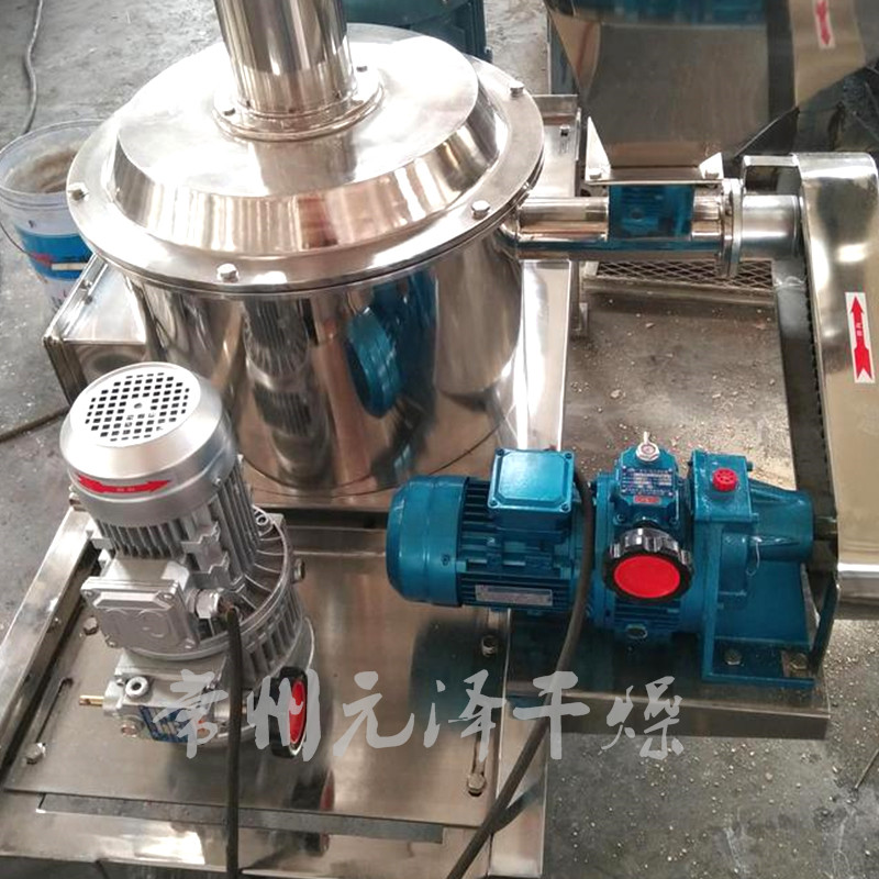 超微粉碎機(jī)是利用空氣分離、重壓研磨、剪切的形式來(lái)實(shí)現(xiàn)干性物料超微粉碎的設(shè)備。它由柱形粉碎室、研磨輪、研磨軌、風(fēng)機(jī)、物料收集系統(tǒng)等組成。物料通過(guò)投料口進(jìn)入柱形粉碎室,被沿著研磨軌做圓周運(yùn)動(dòng)的研磨輪碾壓、剪切而實(shí)現(xiàn)粉碎。被粉碎的物料通過(guò)風(fēng)機(jī)引起的負(fù)壓氣流帶出粉碎室,進(jìn)入物料收集系統(tǒng),經(jīng)過(guò)濾袋過(guò)濾,空氣被排出,物料、粉塵被收集,完成粉碎。物料由料門經(jīng)螺旋輸送器進(jìn)入粉碎室,被高速旋轉(zhuǎn)的刀片剪切粉碎,通過(guò)負(fù)壓風(fēng)運(yùn)的方法把物料運(yùn)入旋風(fēng)分離器,袋式除塵器、排出物料粉塵由吸塵箱經(jīng)布袋過(guò)濾回收,生產(chǎn)過(guò)程中無(wú)粉塵飛揚(yáng),且能提高物料的利用率,降低企業(yè)成本。