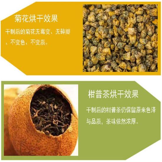 海藻、脫水蔬菜、棗、顆粒飼料、味精、雞精、椰蓉、有機(jī)顏色、合成橡膠、丙烯纖維、藥品、藥材、小木制品、塑料制品、電子元器件老化、固化等。