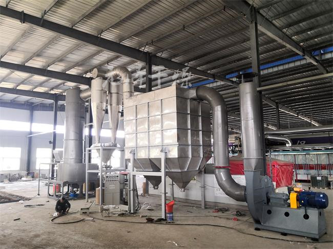 4.有效控制終水份和細度。進料及熱風溫度的調(diào)節(jié)及分級器的協(xié)調(diào)統(tǒng)一,對終水份和成品粒度能夠充分控制,從而保證了產(chǎn)品的濕含量及細度均勻一致。