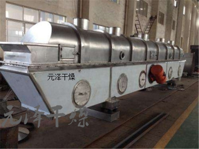 振動(dòng)流化床干燥機(jī)物料自進(jìn)料口進(jìn)入機(jī)內(nèi), 在振動(dòng)力作用下, 物料沿水平方向拋擲向前連續(xù)運(yùn)動(dòng),熱風(fēng)向上穿過流化床同濕料換熱后, 濕空氣經(jīng)旋風(fēng)分離器除塵后由排風(fēng)口排出, 干燥物料由排料口排出。