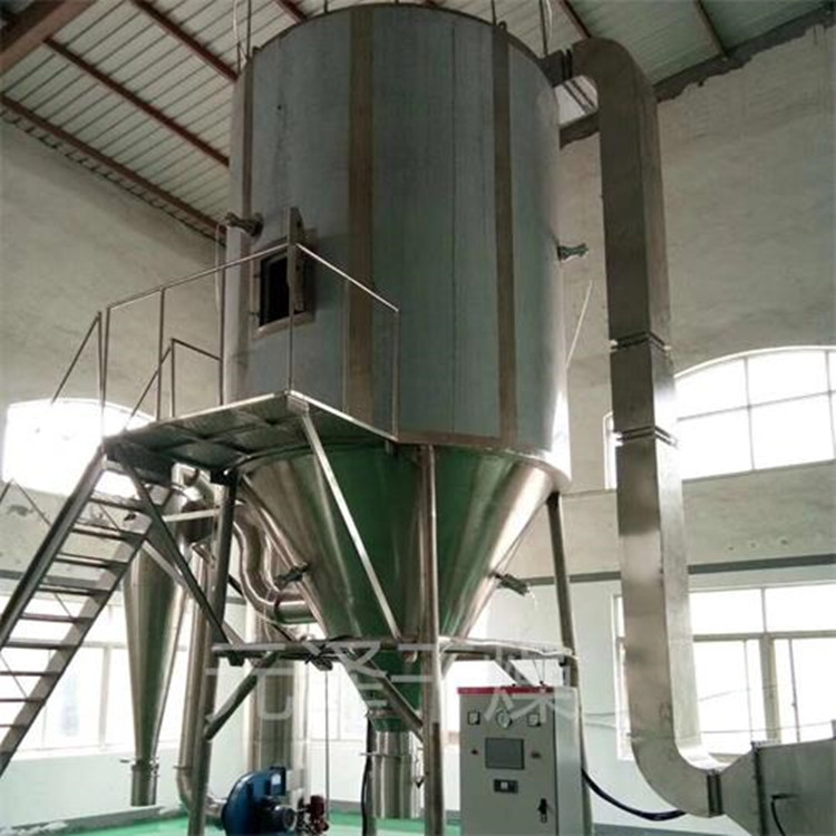 3、噴霧干燥機生產(chǎn)過程簡化,操作控制方便。對于濕含量40-60%(特殊物料可達90%)的液體能一次干燥成粉粒產(chǎn)品,干燥后不需粉碎和篩選,減少生產(chǎn)工序,提高產(chǎn)品純度。對產(chǎn)品粒徑、松密度、水份,在一定范圍內(nèi)可通過改變操作條件進行調(diào)整,控制和管理都很方便。